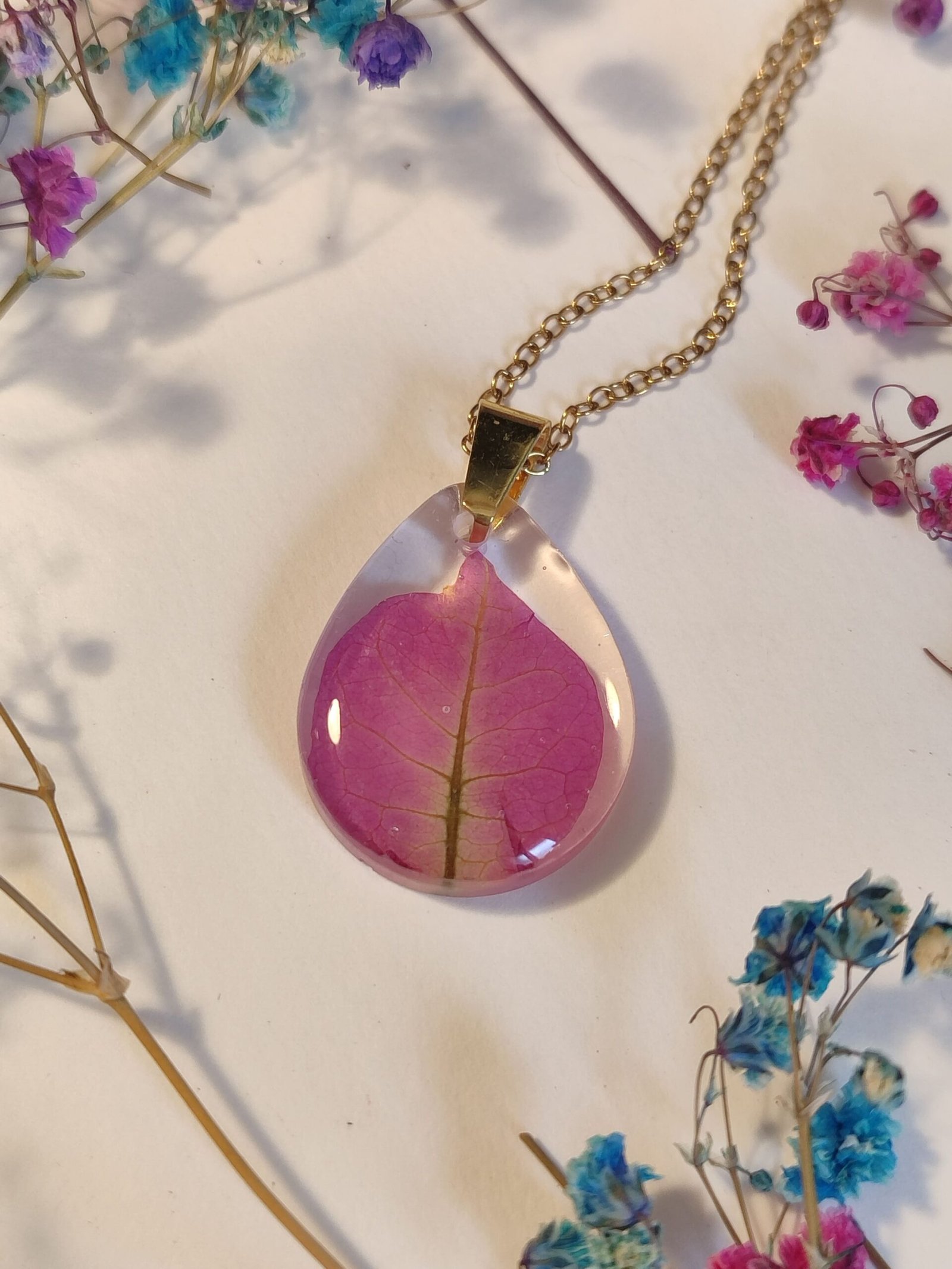 COLGANTE con UN BUGANVILLA encapsulada en resina.