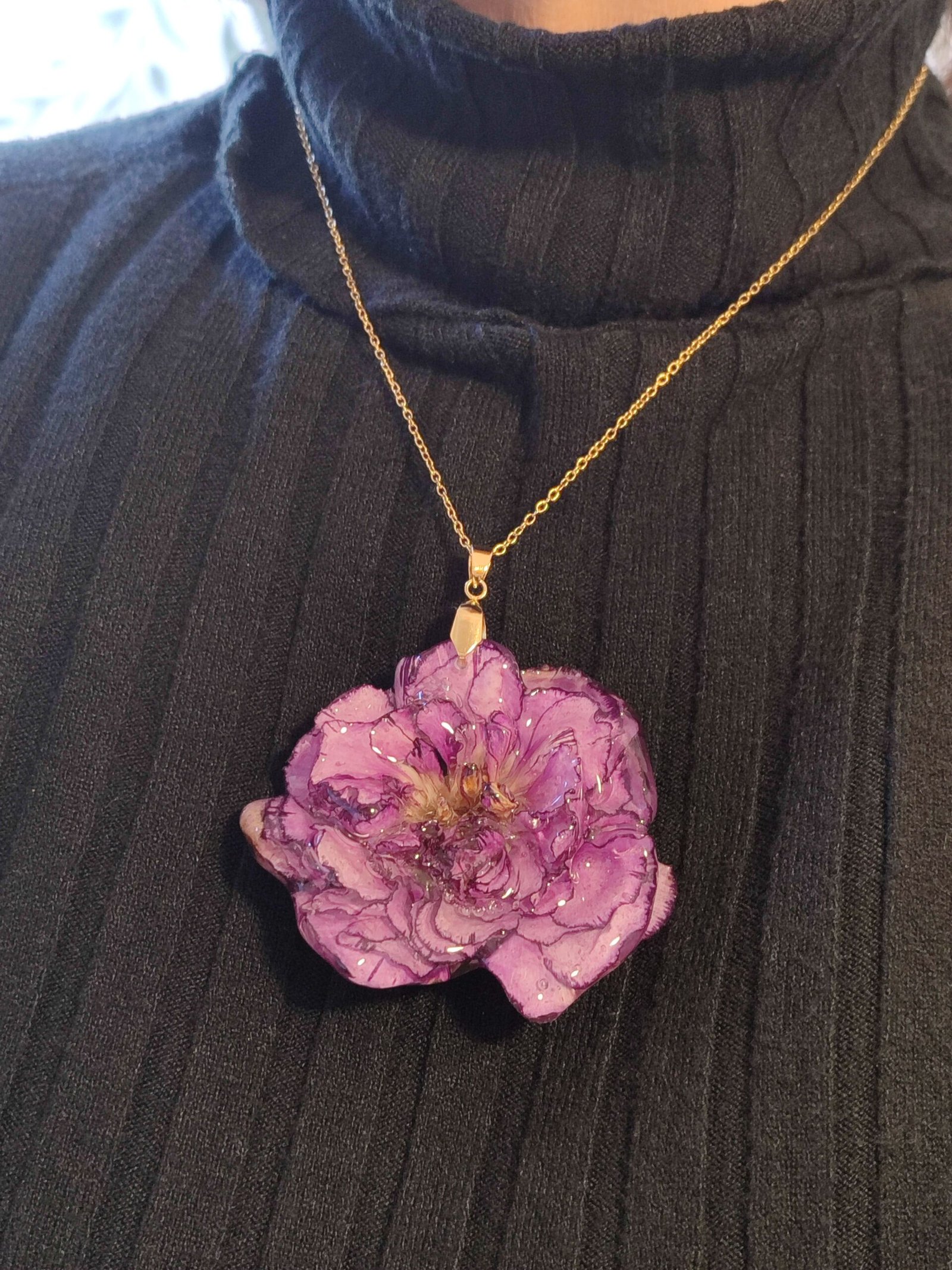 • Uso acero inoxidable en mis creaciones para evitar posibles alergias, no para que las piezas sean mojadas. La resina y las flores no se llevan bien con el agua, así que has de evitar ducharte con ellas. Por descontado, si vas a la playa a la piscina, mejor deja tus florecitas en casa.