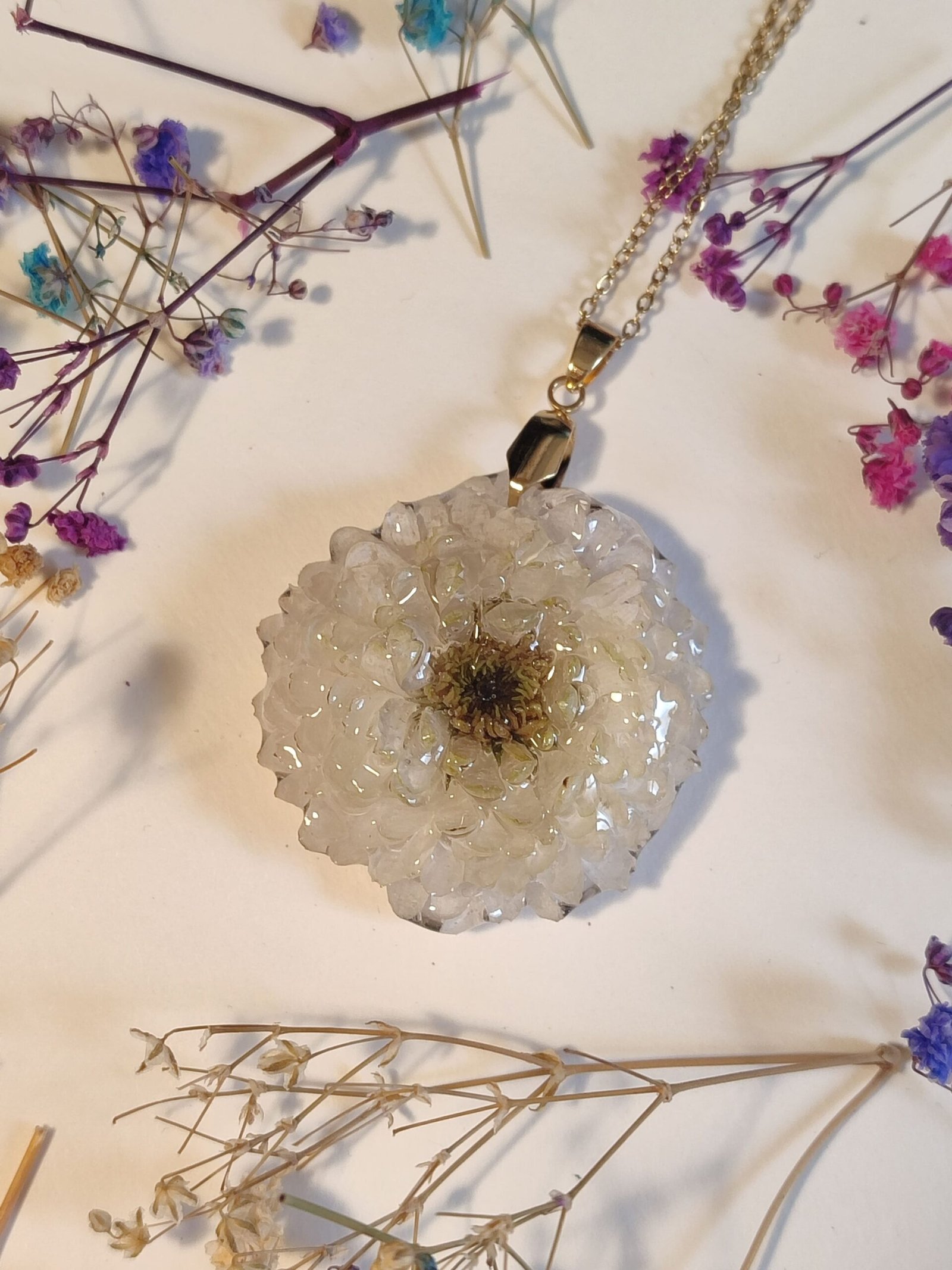 COLGANTE con UN CRISANTEMO encapsulado en resina