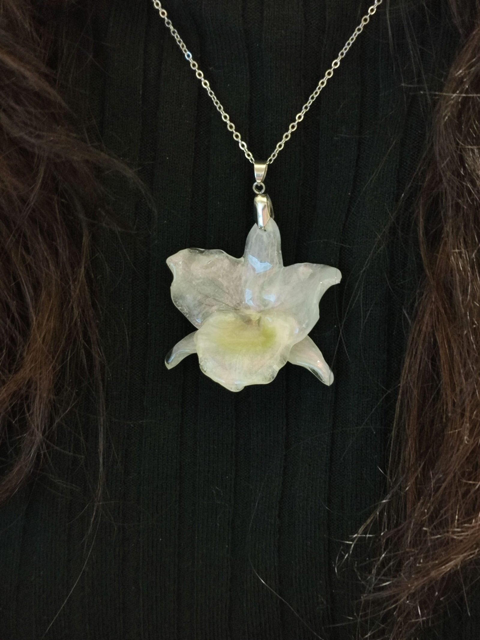 Colgante con UNA ORQUÍDEA DENDROBIUM encapsulada en resina.