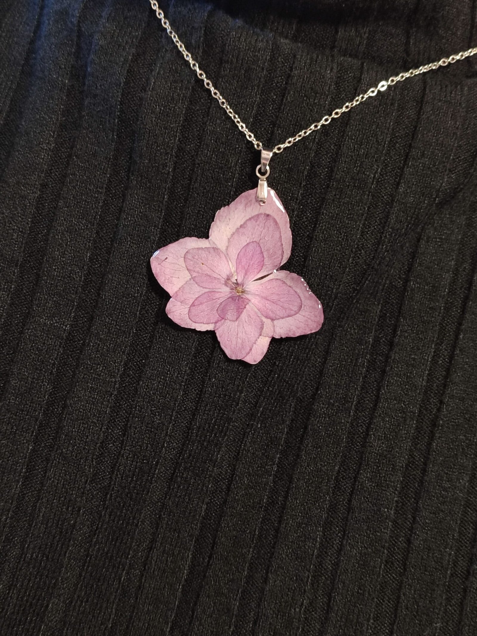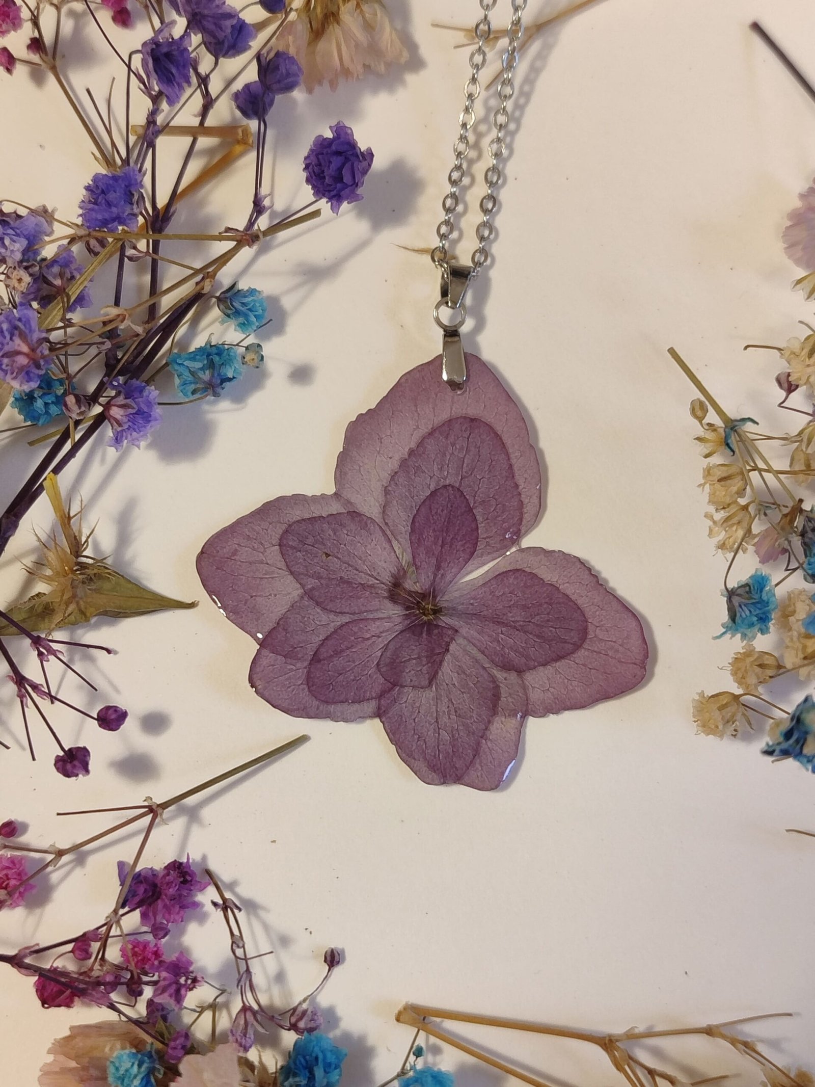 Colgante con UNA FLOR DE HORTENSIA encapsulada en resina