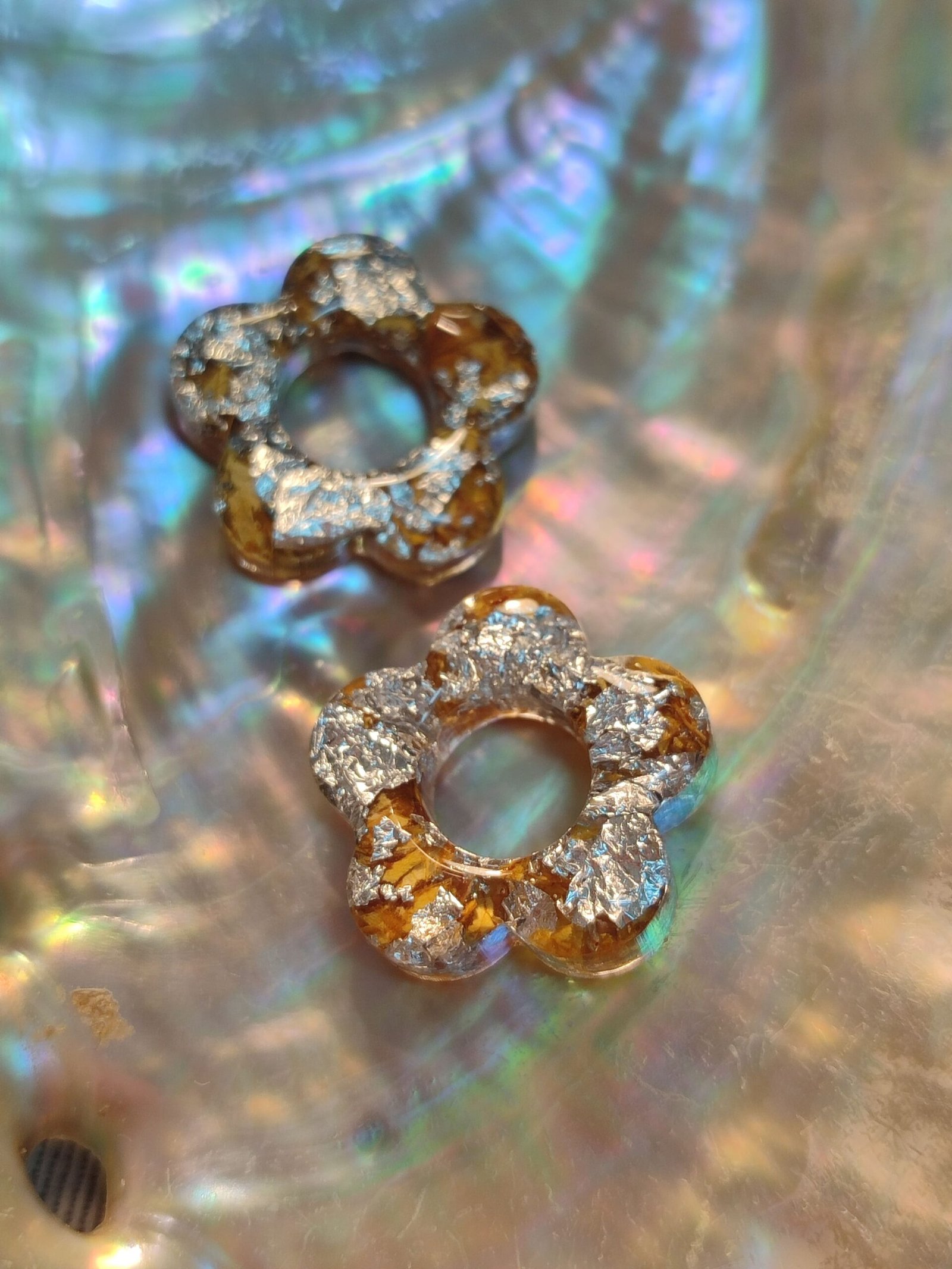 • Uso acero inoxidable en mis creaciones para evitar posibles alergias, no para que las piezas sean mojadas. La resina y las flores no se llevan bien con el agua, así que has de evitar ducharte con ellas. Por descontado, si vas a la playa, a la piscina, mejor deja tus florecitas en casa.