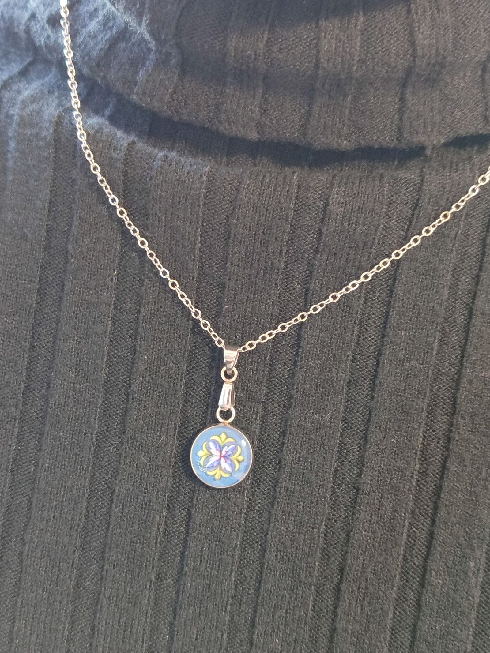 Colgante de acero inoxidable CON MOTIVO DE UNA BALDOSA (pegatina) encapsulada en resina.