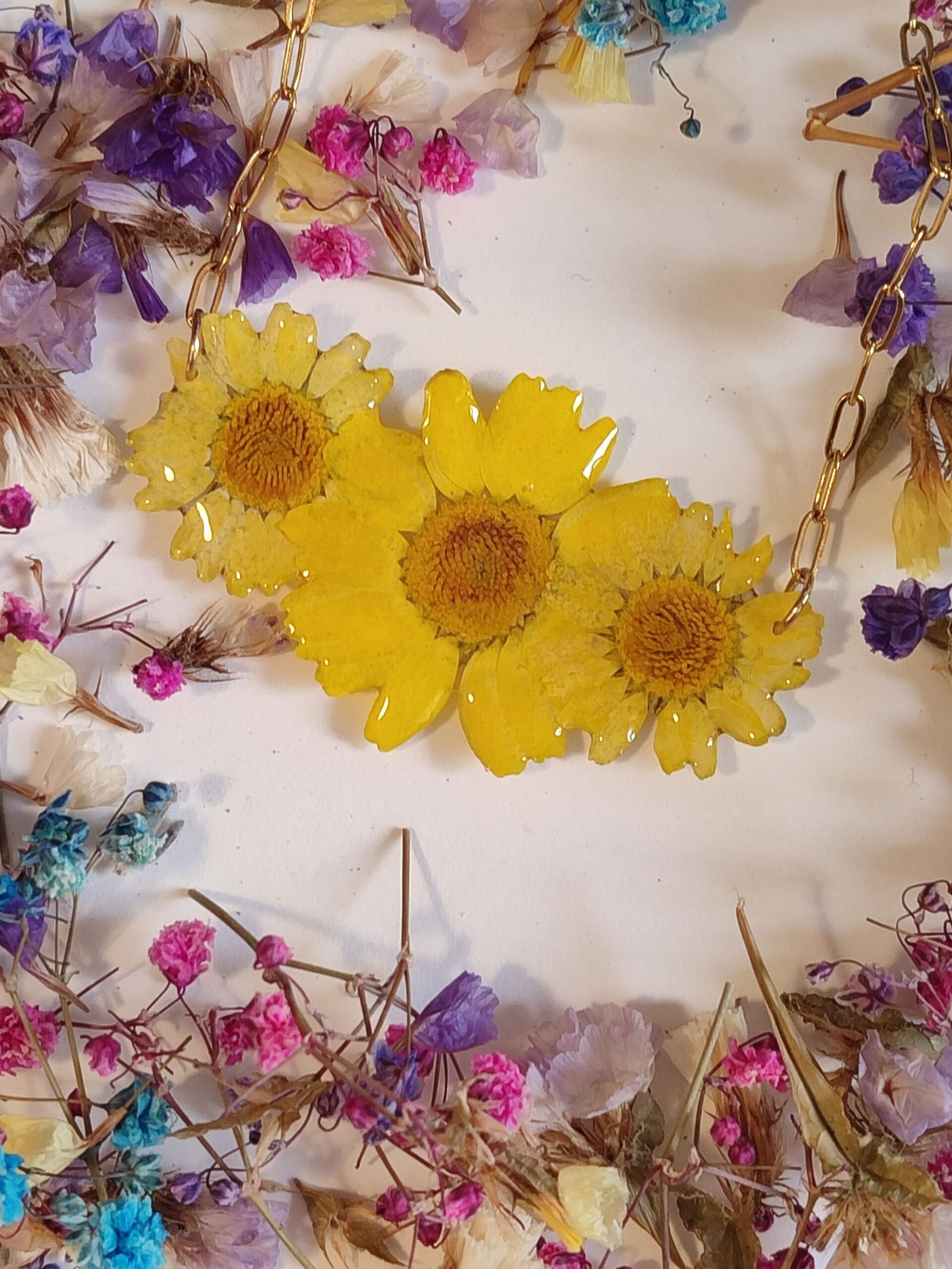Colgante con UN TRIO DE MARGARITAS encapsuladas en resina