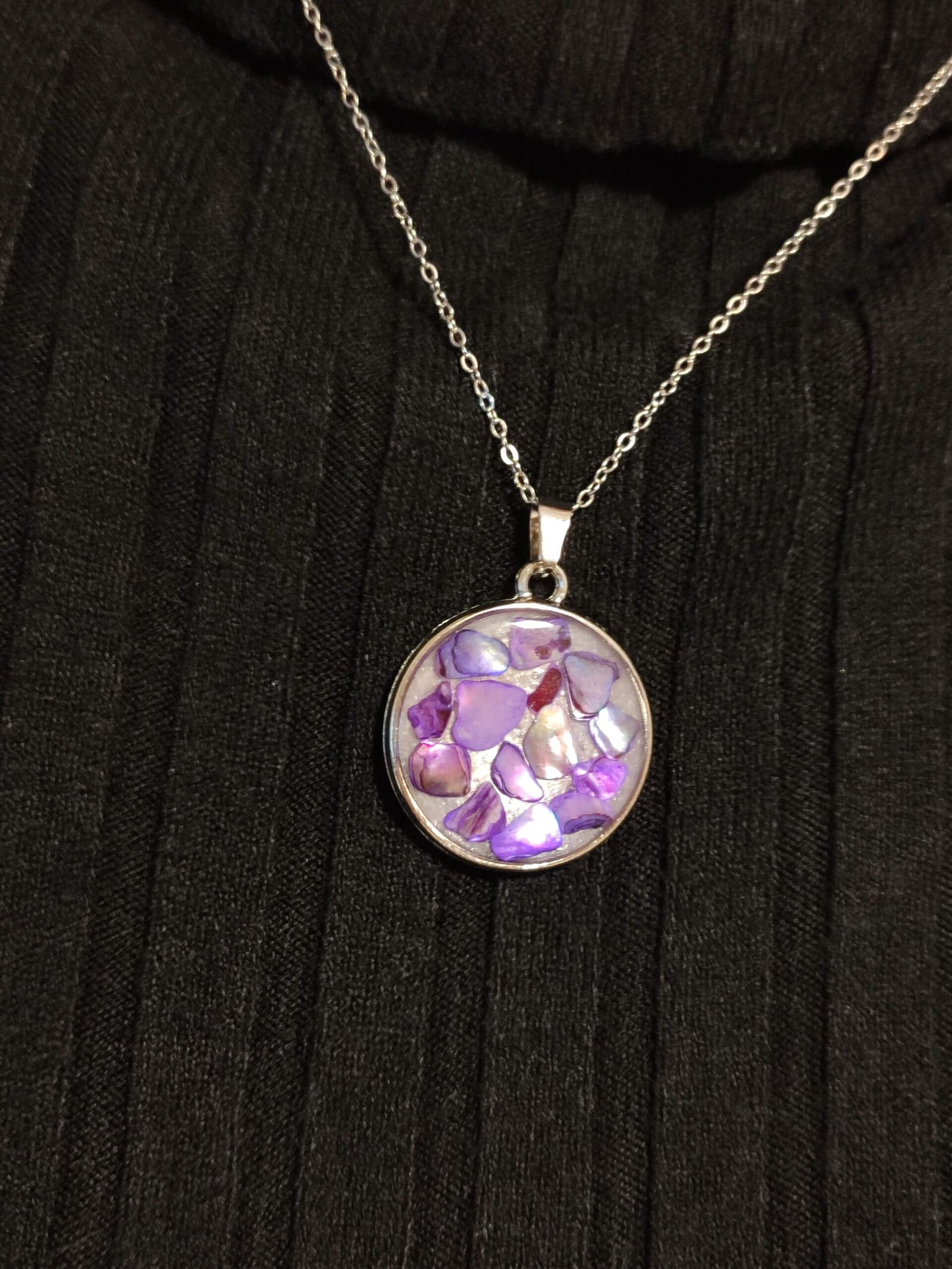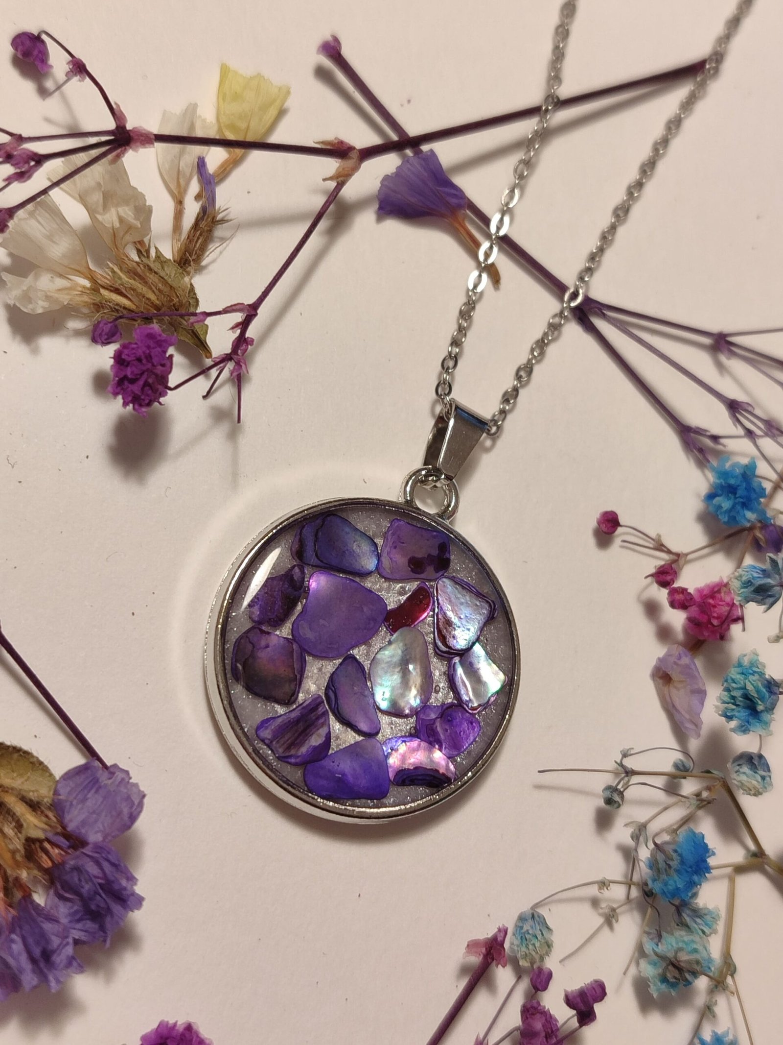 Colgante con PIEDRECITAS NACARADAS COLOR LILA encapsuladas en resina