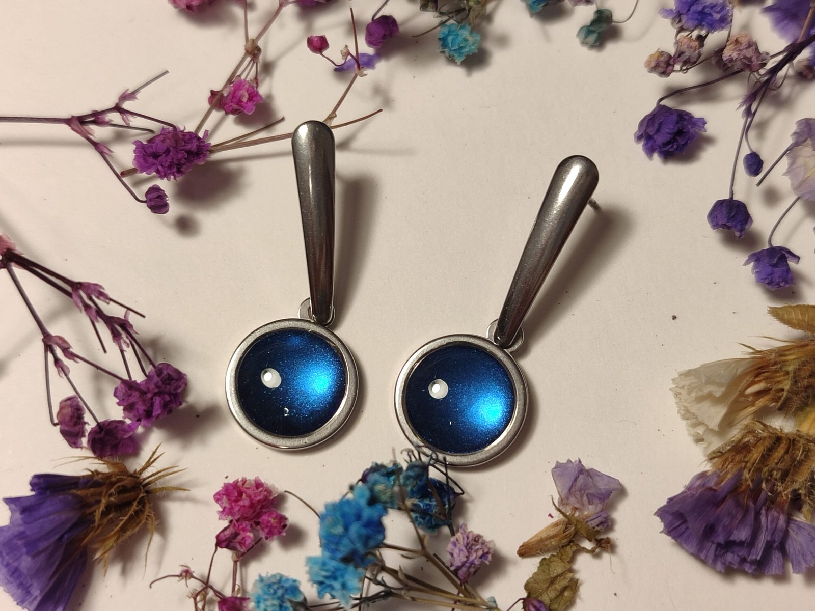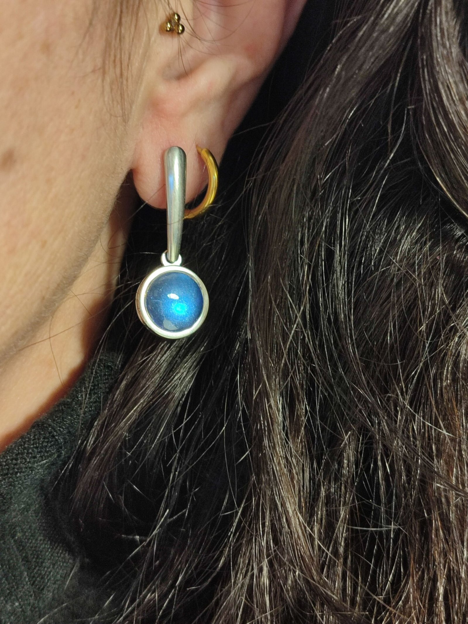 Pendientes de acero inoxidable con POLVOS IRIDISCENTES encapsulados en resina.