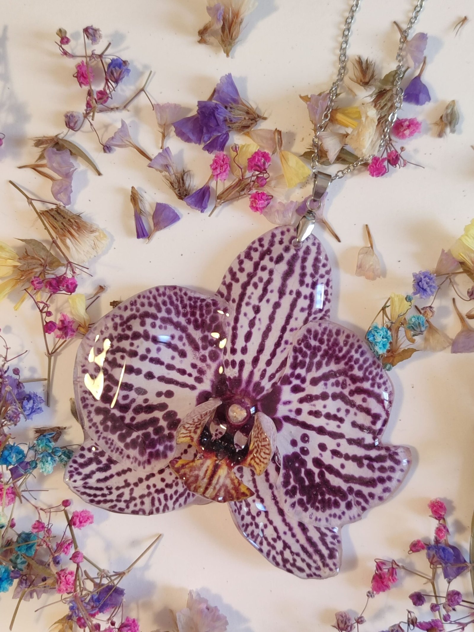 Colgante con UNA ORQUÍDEA encapsulada en resina