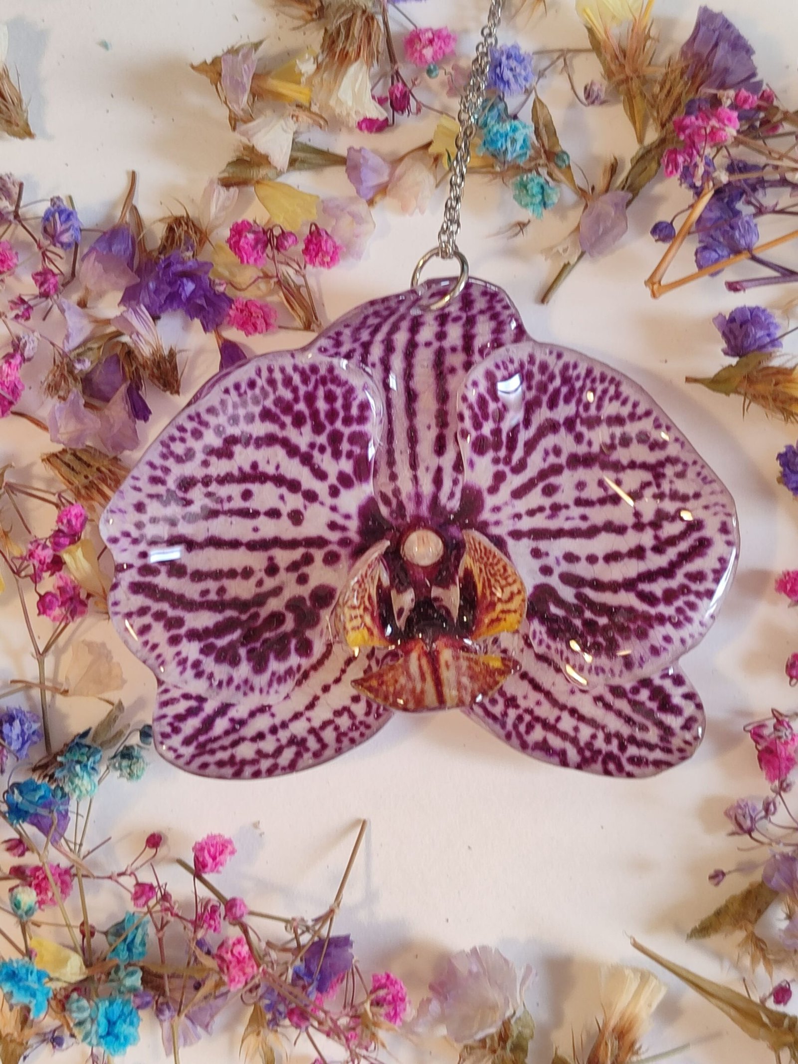 Colgante con UNA ORQUIDEA encapsulada en resina