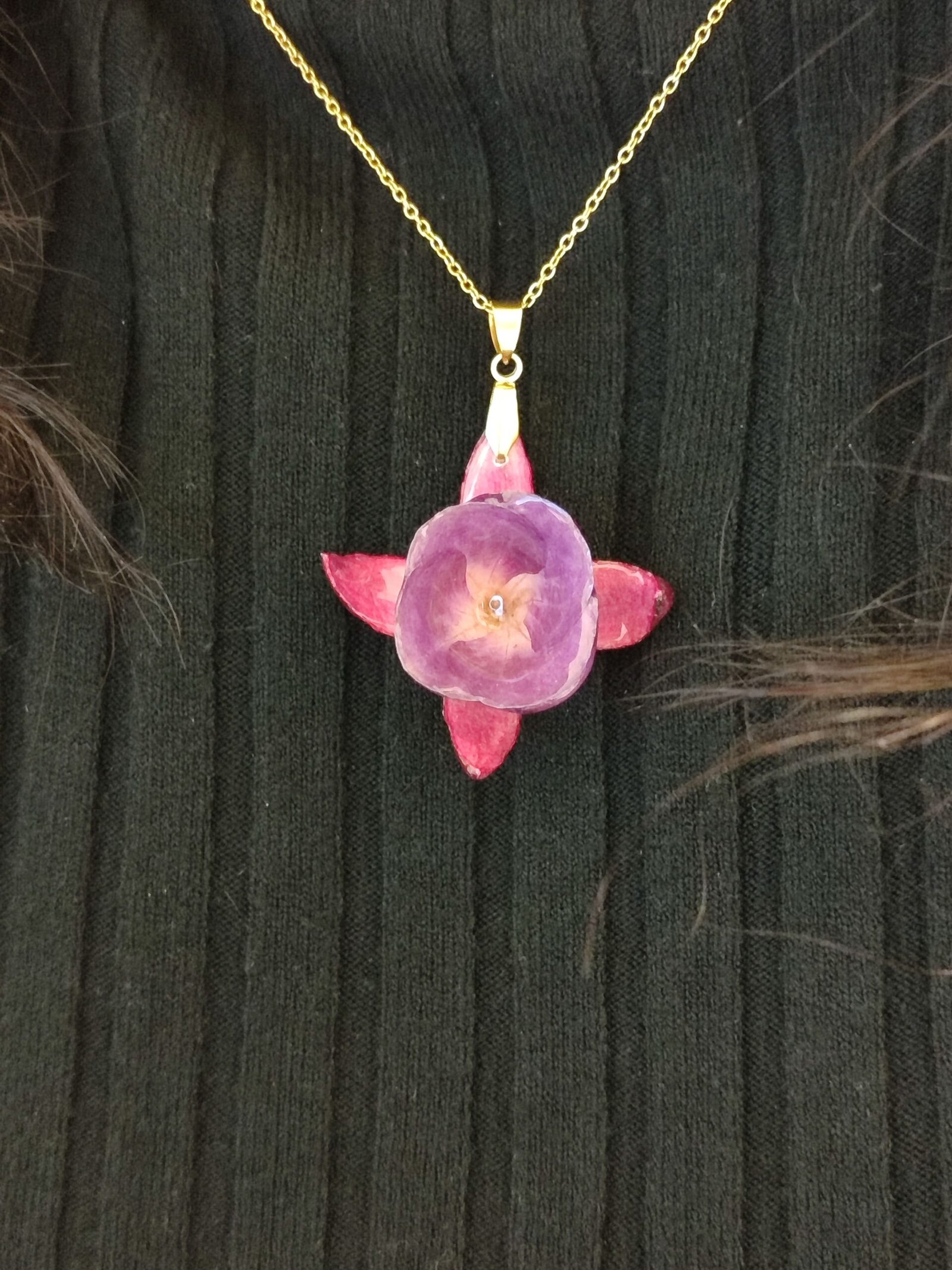 Colgante con UNA FLOR DE PENDIENTES DE LA REINA encapsulada en resina.